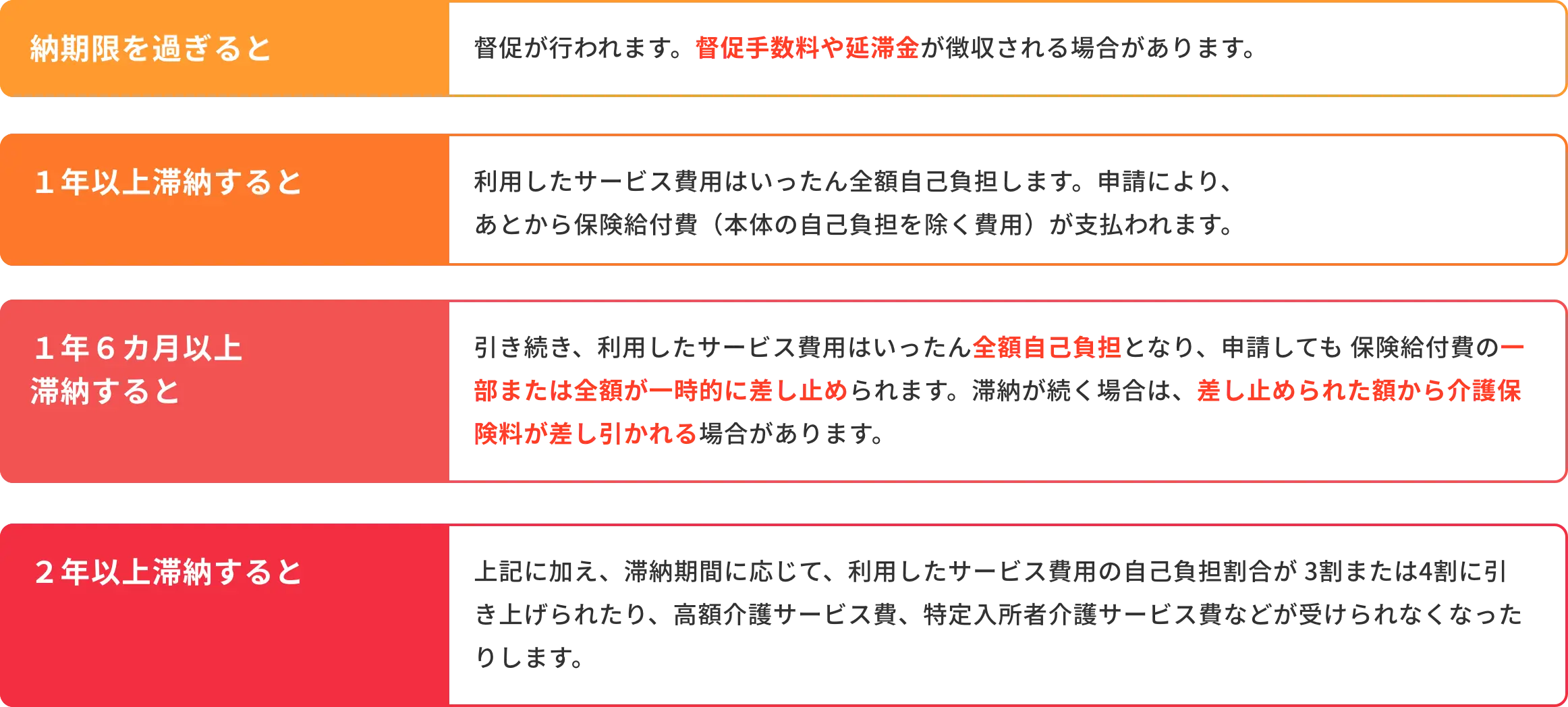 災害など特別な事情もなく介護保険料を納めないでいると、次のような措置がとられます。